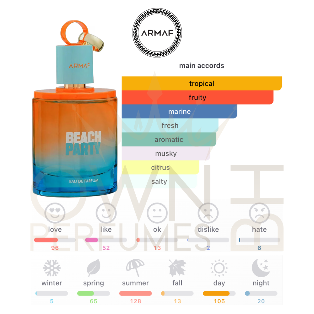 - 2025 Launch: Beach Party by Armaf captures the essence of a carefree seaside escape in a modern, uplifting scent.